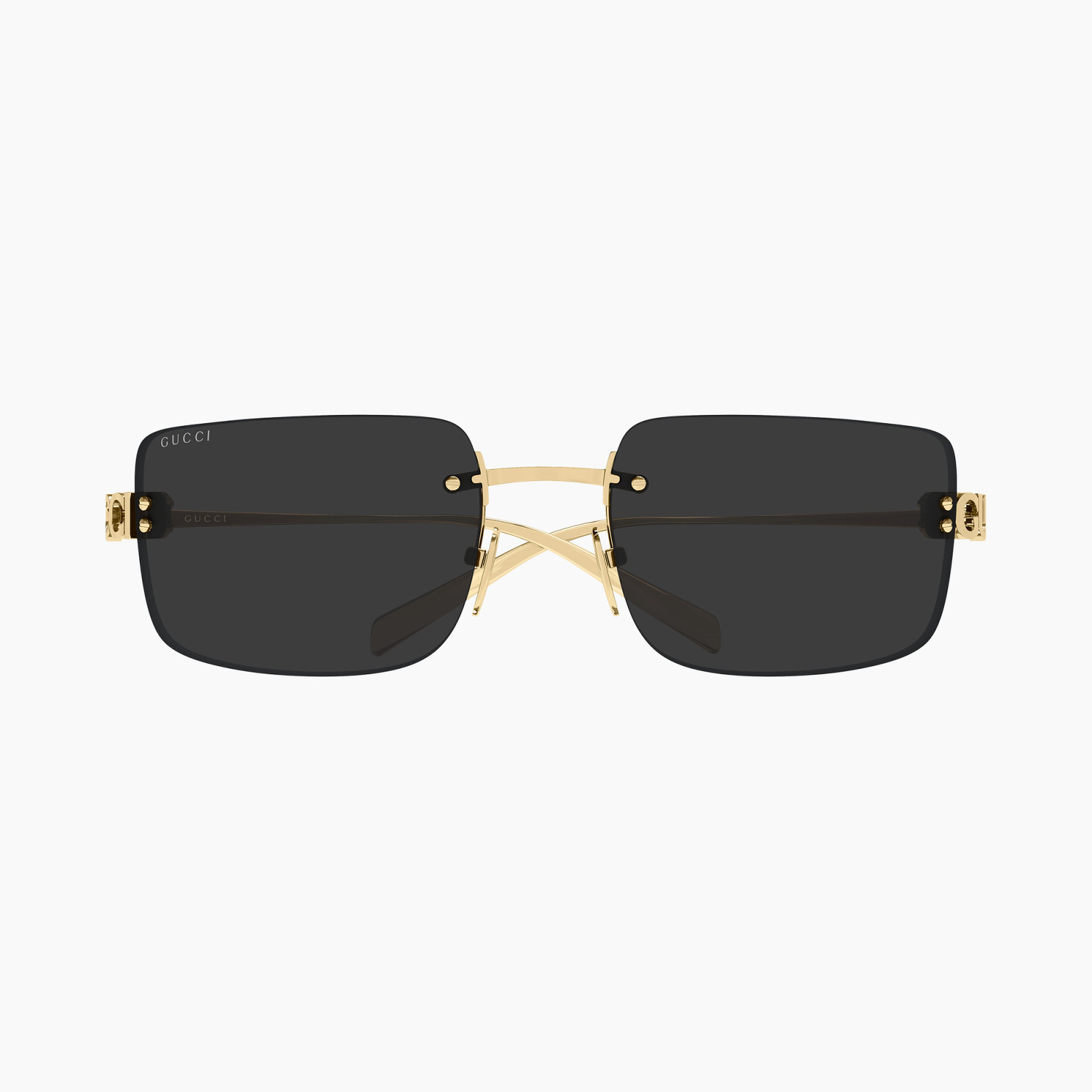 Occhiale da sole Gucci GG2038S-001 dal design rettangolare rimless con montatura in metallo oro e lenti grigie. Leggero e sofisticato, offre protezione UV completa ed è perfetto per un look moderno e di forte impatto. Ideale per chi cerca uno stile luxury, minimal e distintivo.