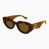 Design elegante e contemporaneo con montatura nera, aste rosa e lenti marroni. Un modello Gucci che esprime personalità e raffinatezza, perfetto per un look moderno e sofisticato.