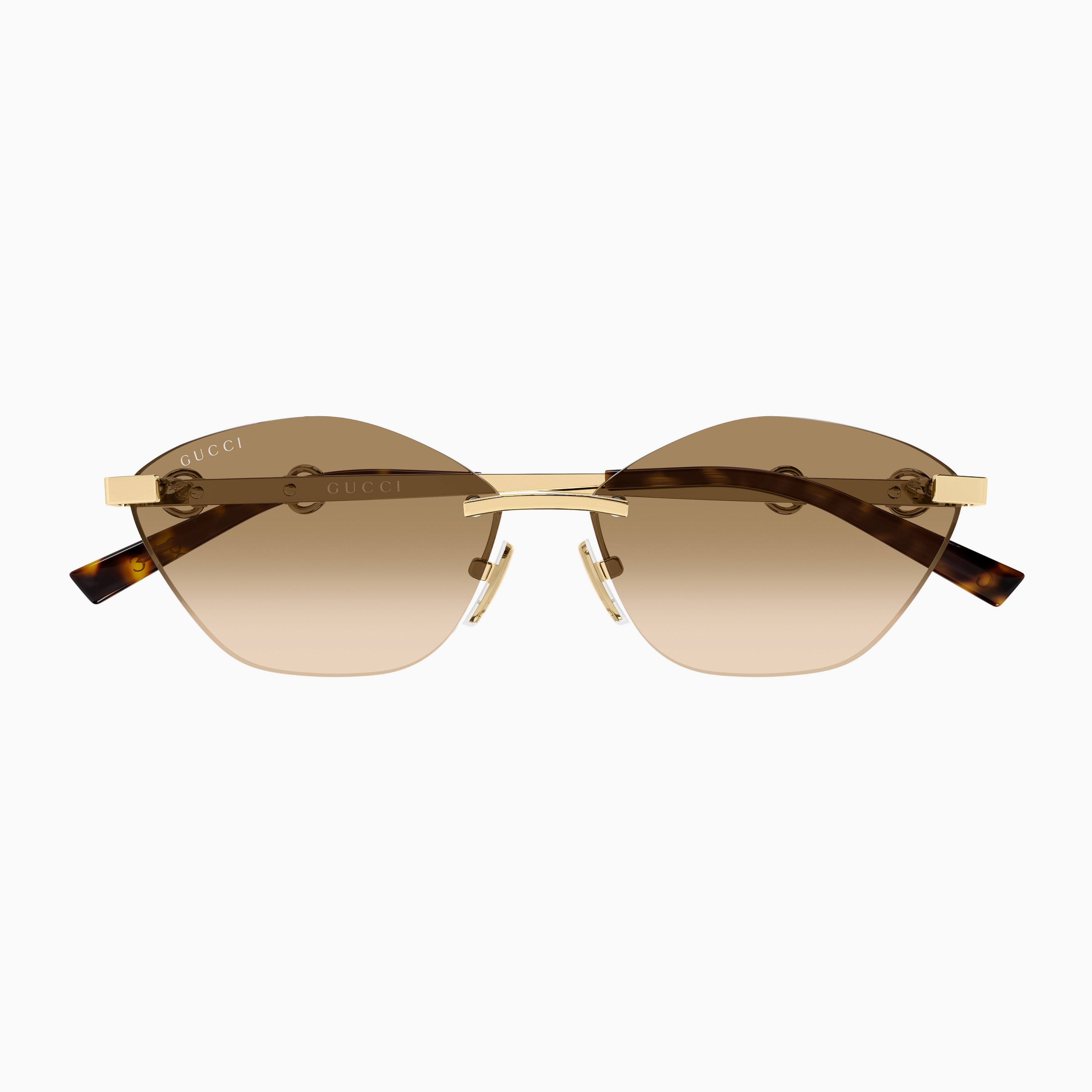 Concept ispirato al mondo equestre, con struttura glasant e iconico dettaglio Morsetto che attraversa l’asta. Montatura cat-eye geometrica. Versione da vista con finitura galvanica dorata e alcune SKU con dettaglio smaltato sulle aste.