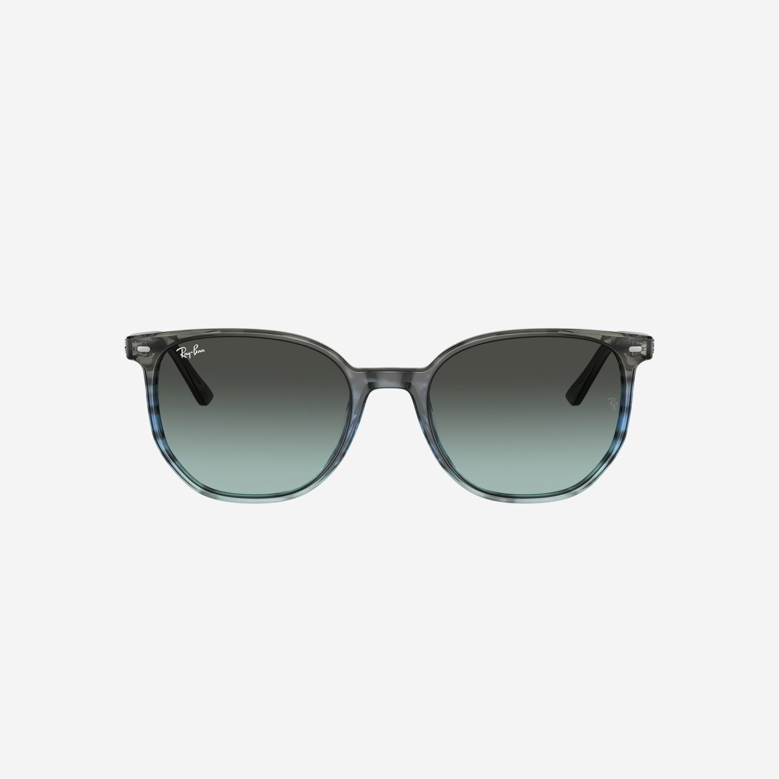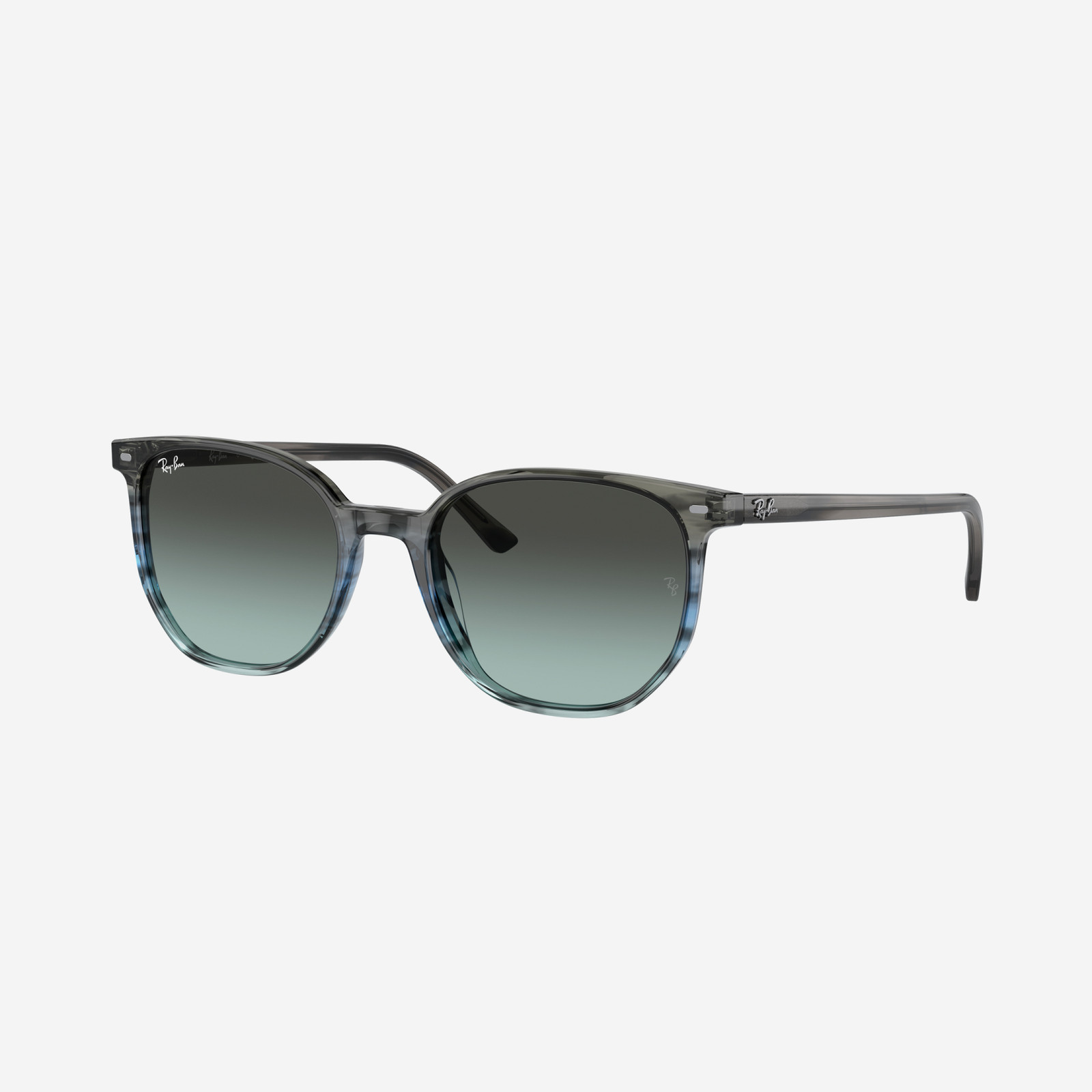 Occhiali da sole Ray-Ban con montatura blu e grigio a strisce in acetato di alta qualità e lenti blu e nero. Questo modello unisex della linea Elliot presenta una forma quadrata moderna e leggermente oversize, ideale per un look elegante ma contemporaneo, perfetto per outfit casual o fashion con protezione solare completa.