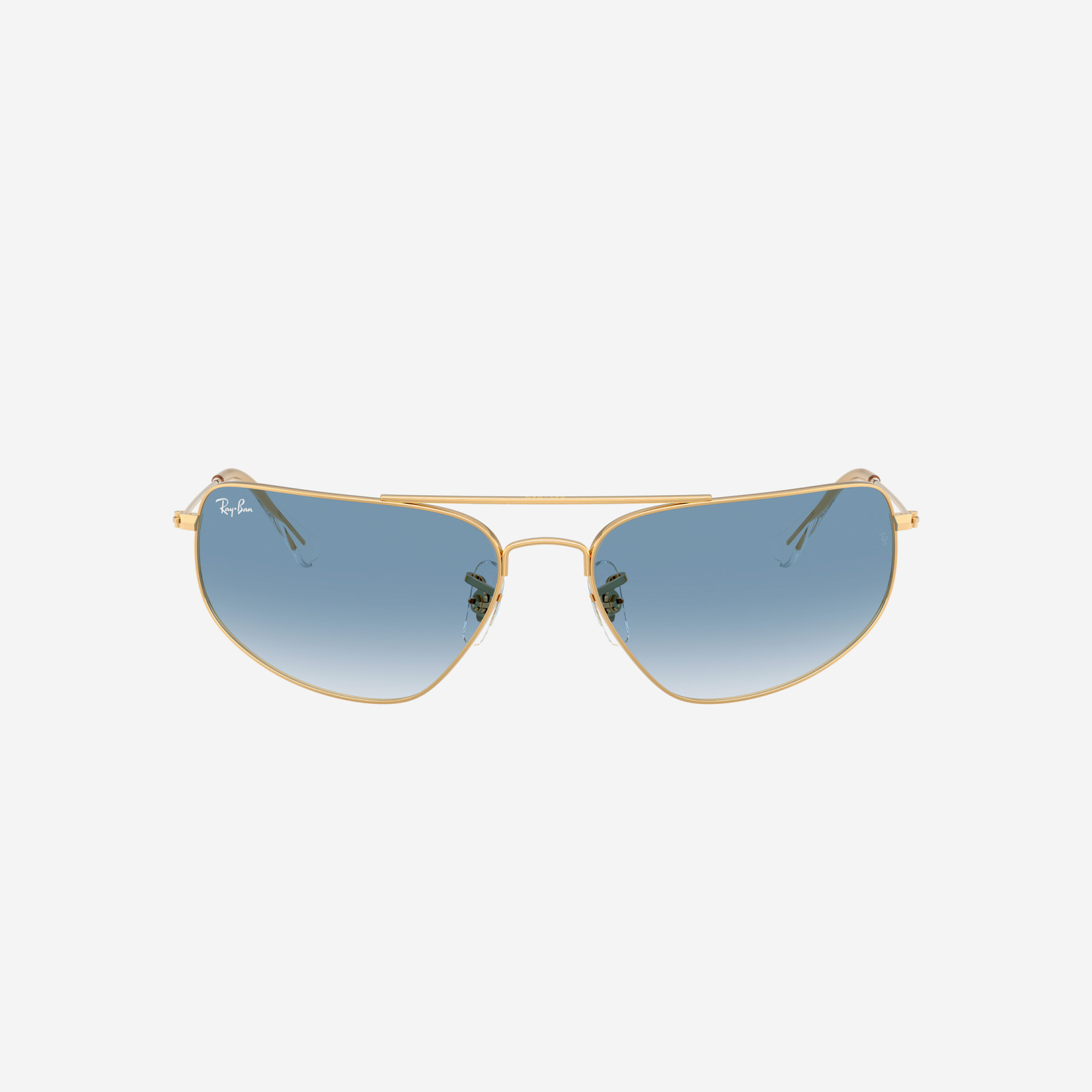 Montatura in metallo oro Arista lucido con lenti clear gradiente blu, parte della famosa linea RB3780 di Ray-Ban. Design rettangolare oversize moderno e versatile, pensato per chi desidera uno stile casual e contemporaneo con protezione solare completa.