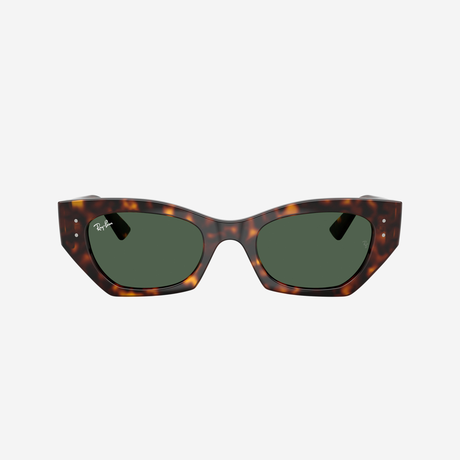 Occhiali da sole Ray-Ban Zena con montatura Havana in acetato di qualità e lenti verdi. Questo modello unisex combina un design moderno e sofisticato della linea Zena con comfort visivo e protezione solare totale UV400, ideale per uso quotidiano o look fashion contemporaneo.