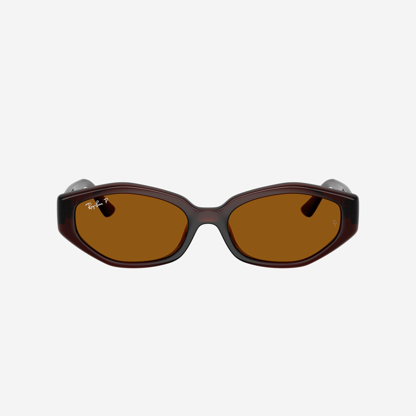 Occhiali da sole Ray-Ban RB4473D 714/83 con montatura marrone scuro in plastica e lenti marroni a tinta uniforme o leggermente polarizzate, appartenenti al design contemporaneo del modello RB4473D. Questa versione combina un look raffinato e versatile con silhouette moderna e protezione solare totale, ideale sia per outfit casual che fashion.