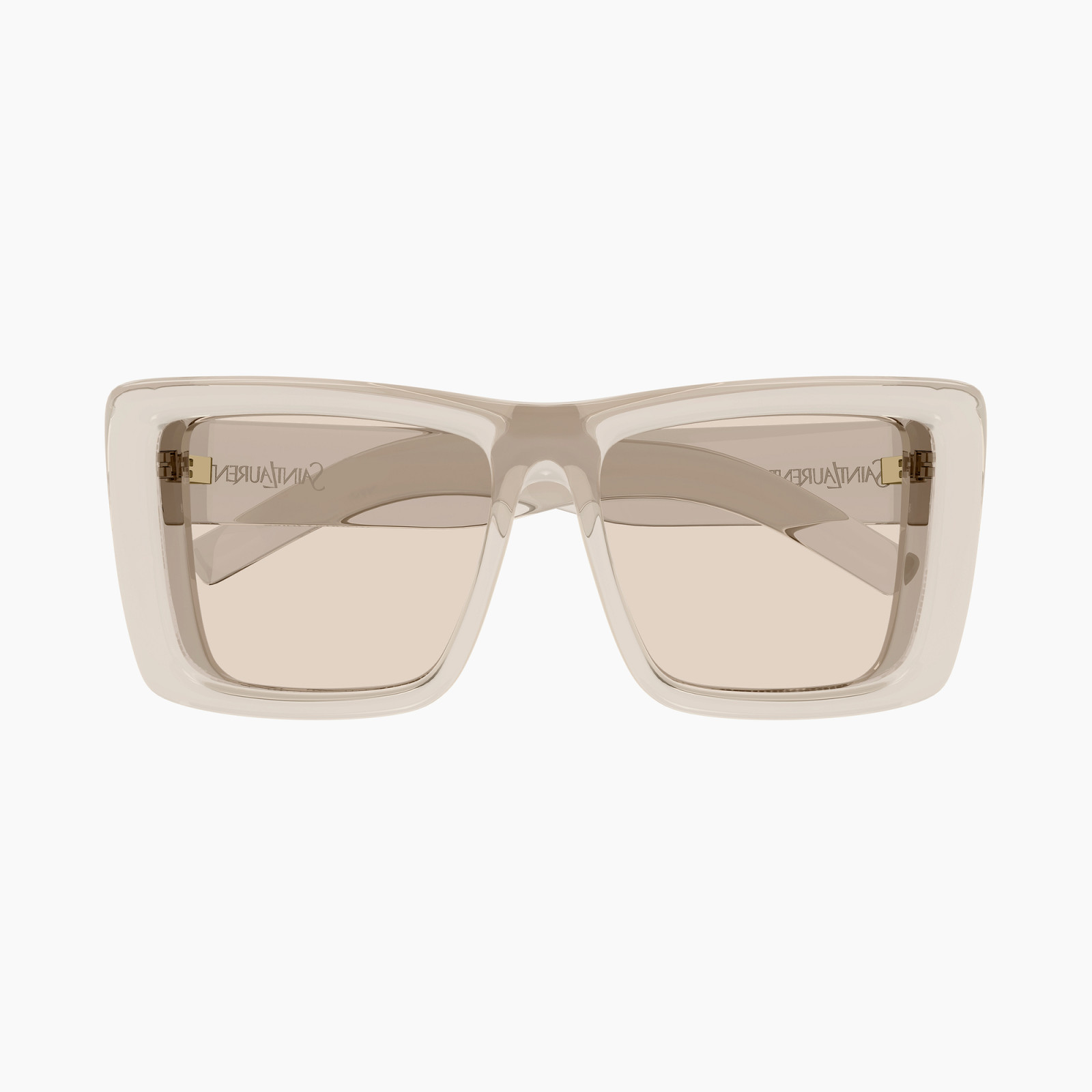 Il modello Saint Laurent SL 900 HOWL-002 è un occhiale da sole dal design oversize rettangolare con montatura in beige trasparente (iniettato) e lenti coordinate tono su tono.