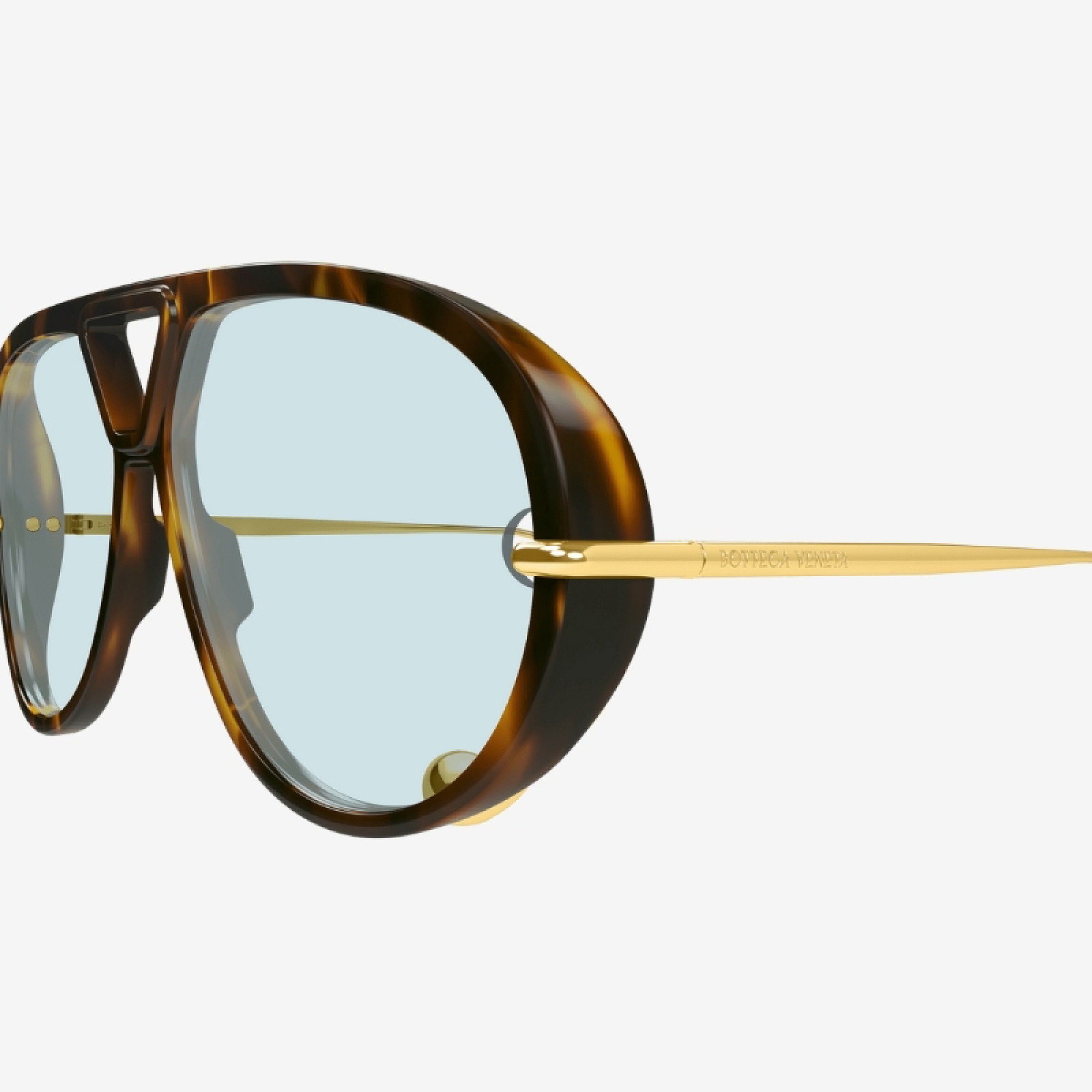 Gli occhiali da sole Bottega Veneta modello BV1273S nella variante 007 presentano una montatura geometrica in acetato riciclato color havana maculato lucido, abbinata a lenti verdi in bio-nylon. Le aste sottili in metallo dorato e il ponte a doppia barra conferiscono un tocco distintivo e sofisticato. Le dimensioni sono: larghezza lenti 63 mm, ponte 12 mm e lunghezza aste 180 mm. Questi occhiali offrono una protezione UV al 100%, garantendo sia stile che funzionalità.