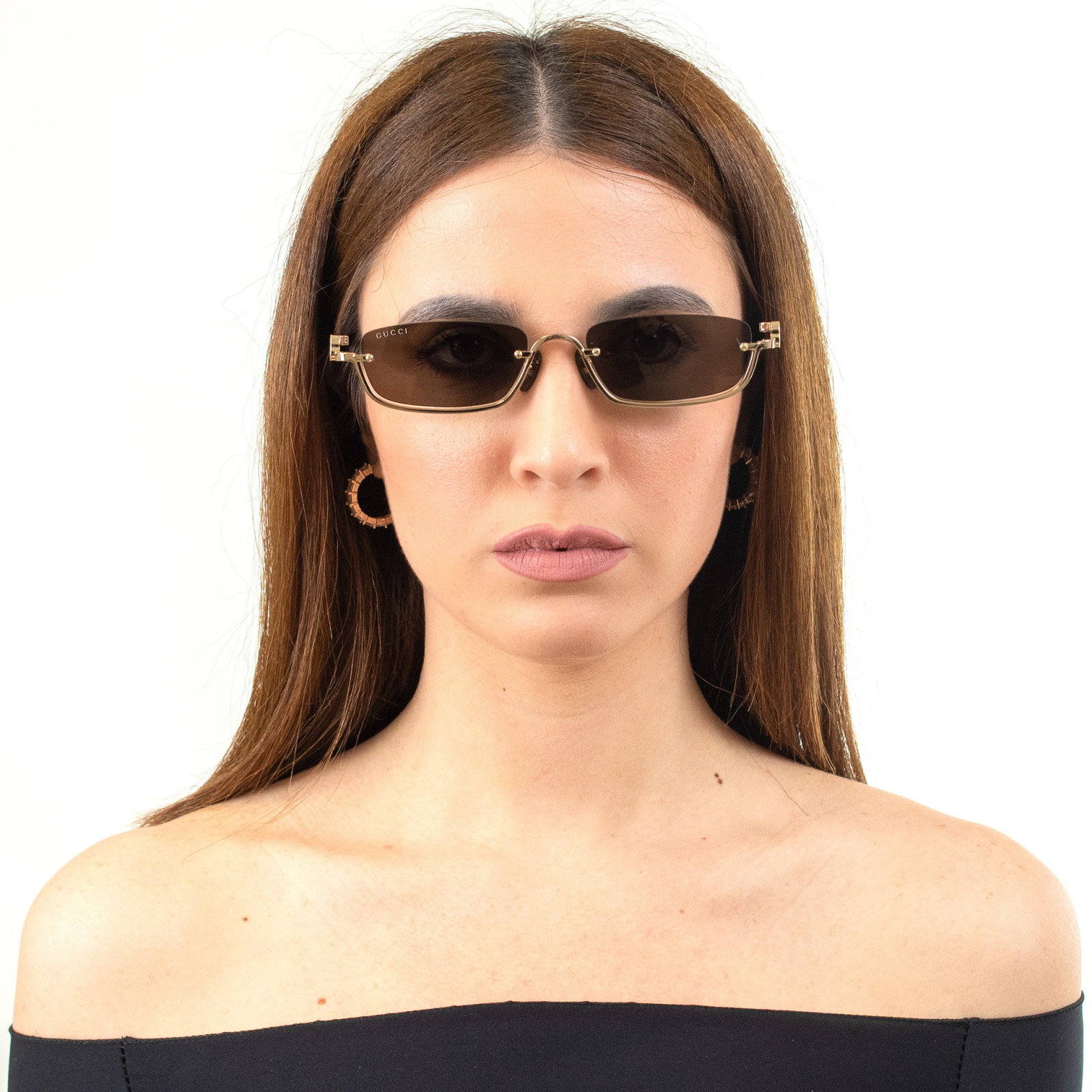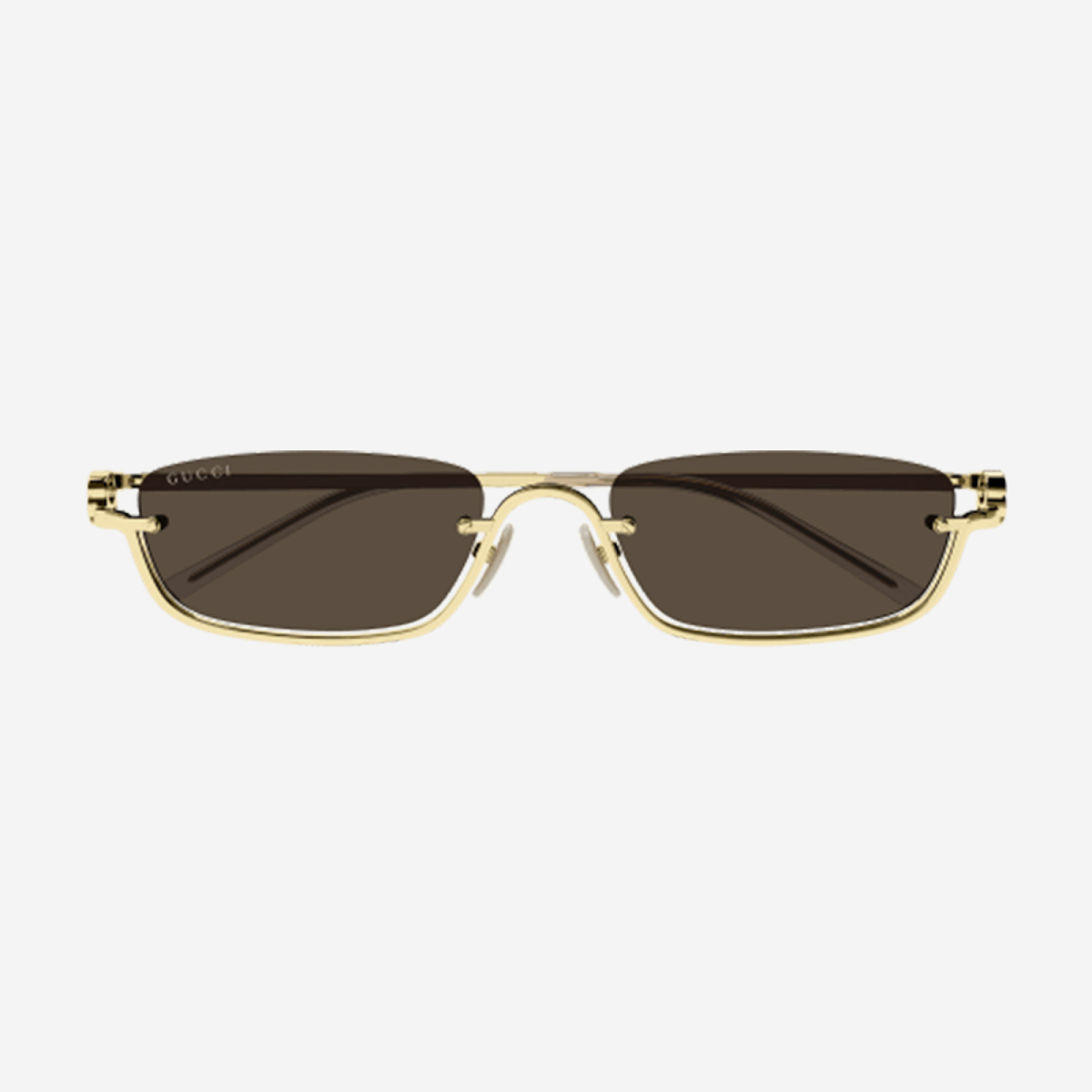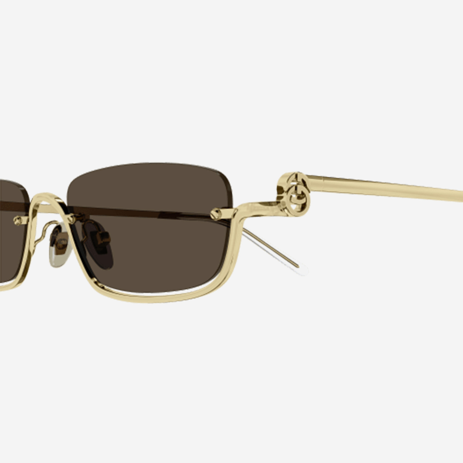 L’occhiale da sole GUCCI GG1278S-001 è realizzato interamente in metallo, nella sua forma geometrica rettangolare, che ne risalta il concept vintage, reinterpretato nella tendenza urban. Montatura arricchita dal logo iconico GG Interlocking Upside Down, su entrambe le aste laterali.