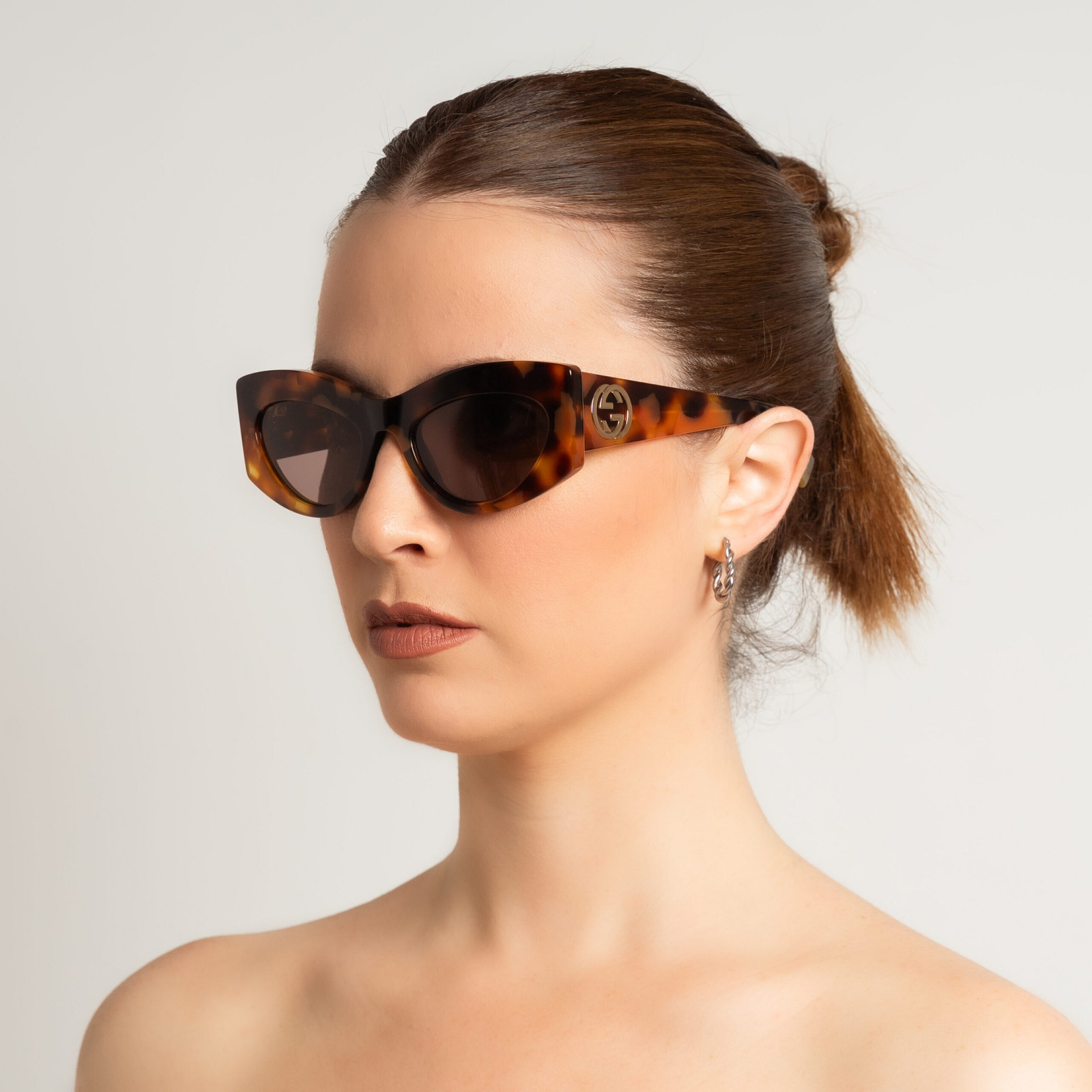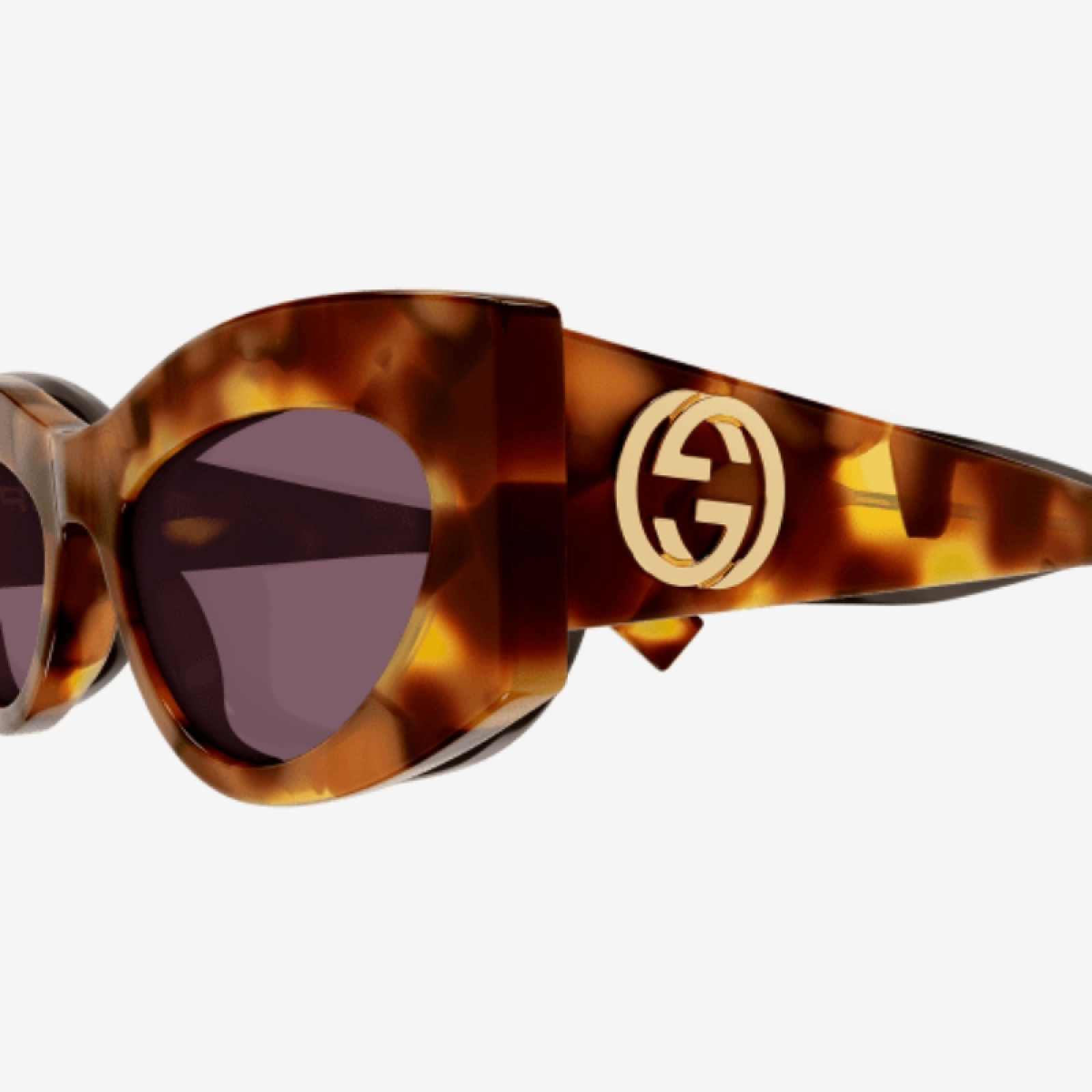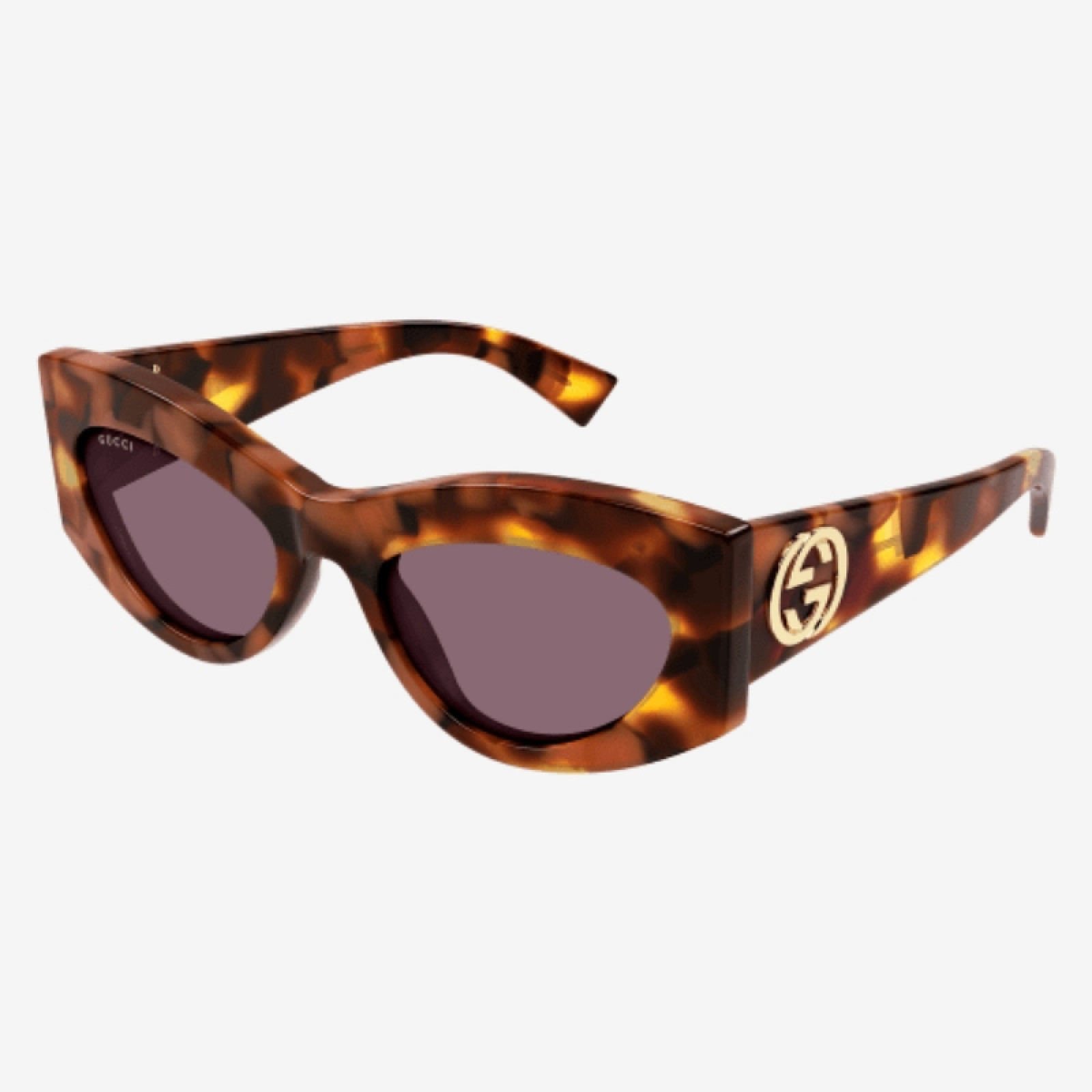 Gli occhiali da sole Gucci GG1843S-003 presentano una montatura oversize in acetato lucido color avana scuro, abbinata a lenti viola in bio-nylon. Il design cat-eye geometrico è arricchito dal logo GG intrecciato sulle aste, aggiungendo un tocco distintivo. Le dimensioni includono una larghezza delle lenti di 53 mm, un ponte di 20 mm e aste di 140 mm, garantendo una vestibilità confortevole. Realizzati in Italia, questi occhiali riflettono l’artigianalità e l’attenzione ai dettagli tipiche di Gucci.