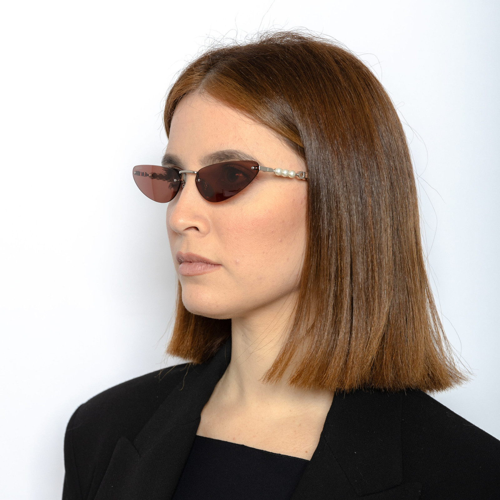 Gli occhiali da sole GUCCI GG1920 uniscono eleganza e audacia con il loro design futuristico. Lenti sottili marroni dal taglio affilato, montatura minimal con aste impreziosite da perle e dettaglio iconico GUCCI. Perfetti per un look di tendenza, questi occhiali sono l’accessorio ideale per chi ama distinguersi con stile.