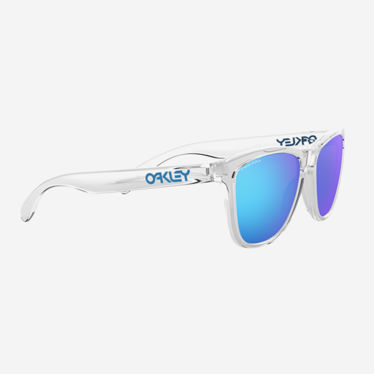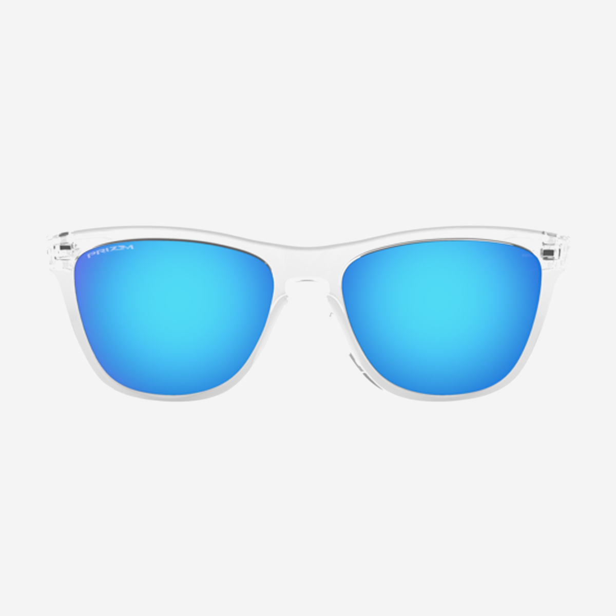 Un modello iconico che unisce stile retrò e performance moderna. La montatura è realizzata in O-Matter™, materiale leggero e resistente, con finitura crystal clear / trasparente. Le lenti sono nella versione Prizm Sapphire, progettate per migliorare contrasto e chiarezza dei colori, pur garantendo protezione UV al 100 %.