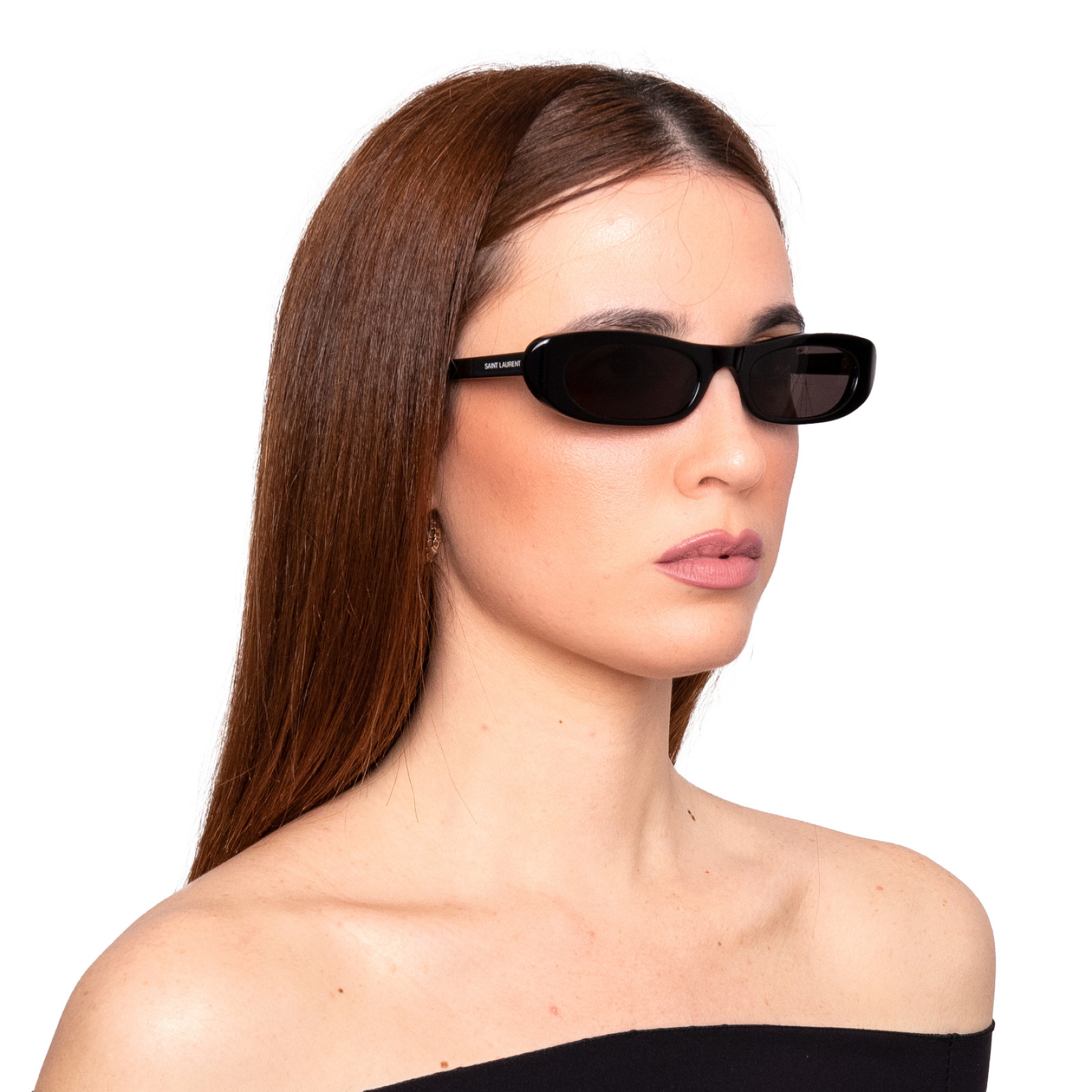 L’occhiale da sole SAINT LAURENT SL 557 SHADE-001 è realizzato in acetato, nella sua particolare forma ovale stretta, che ne esalta la femminilità e la decisa ispirazione vintage. Sulle aste laterali, presente il logo Saint Laurent, inciso con tecnica laser.