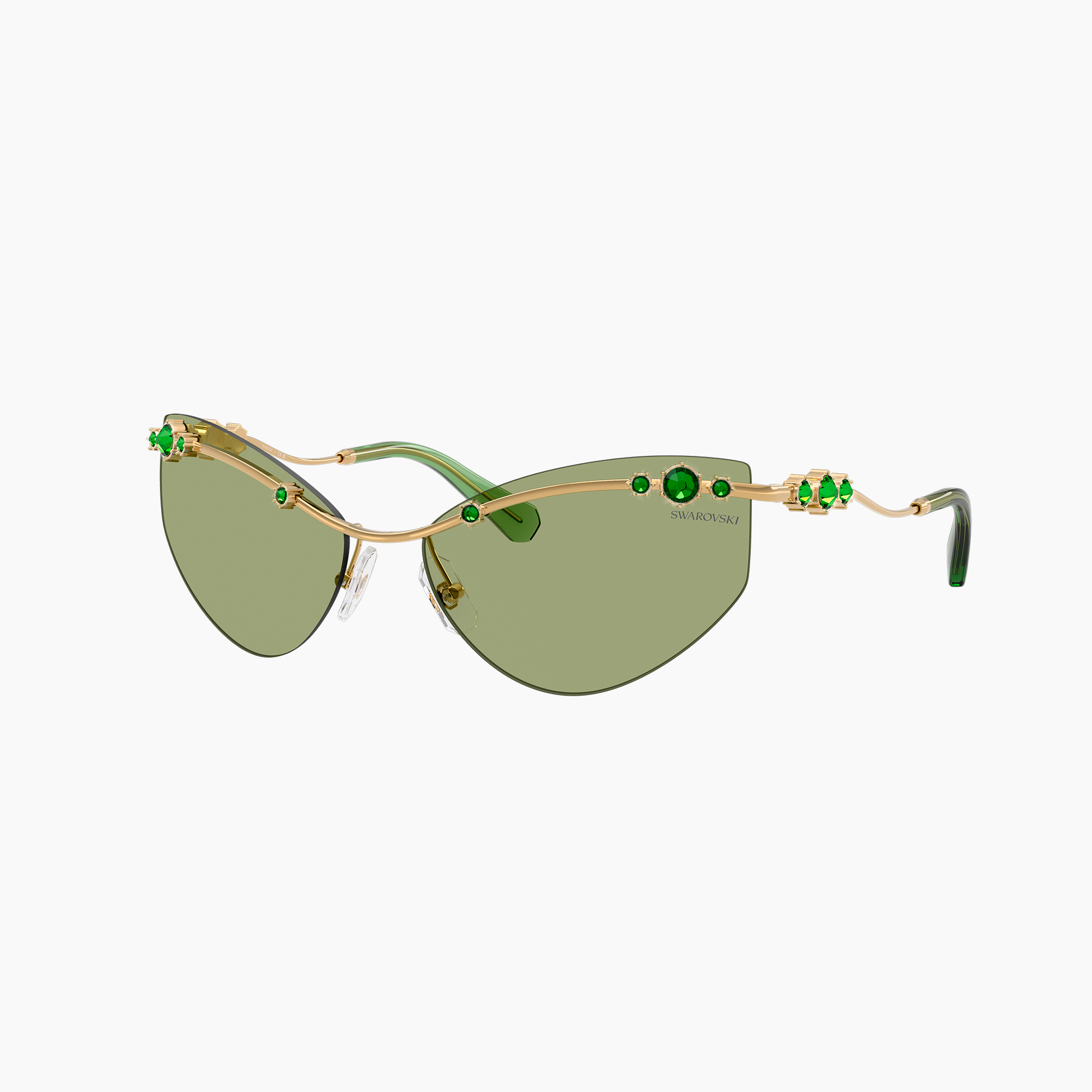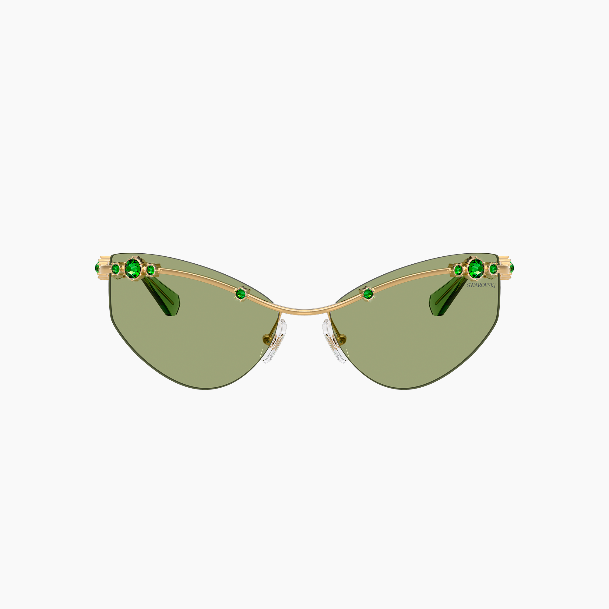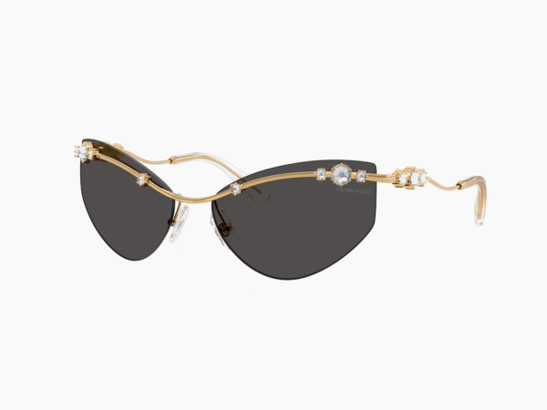 in montatura metallo oro e lenti verdi, misura circa. Un modello dal design geometrico moderno, impreziosito dal tocco distintivo del brand Swarovski. Ideale per chi desidera eleganza, presenza e stile raffinato.