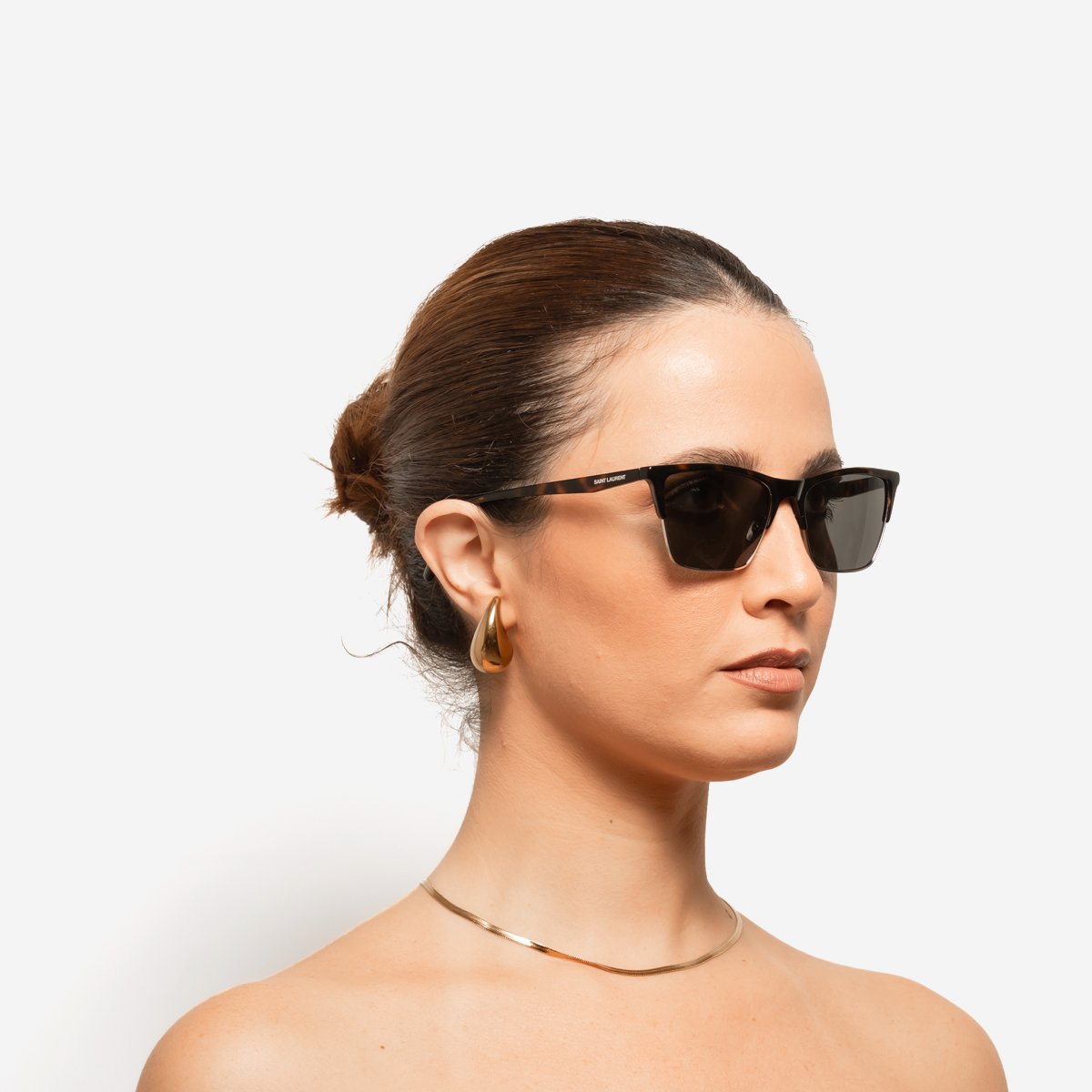 Il modello SL 767 003 propone una montatura in acetato Havana dal carattere elegante e raffinato. Le linee squadrate e moderne donano personalità senza risultare eccessive, mentre le lenti scure garantiscono protezione solare totale e chiarezza visiva. Un occhiale che combina l’anima classica con lo stile urban chic del marchio Saint Laurent, perfetto per chi cerca un accessorio distintivo e intramontabile.