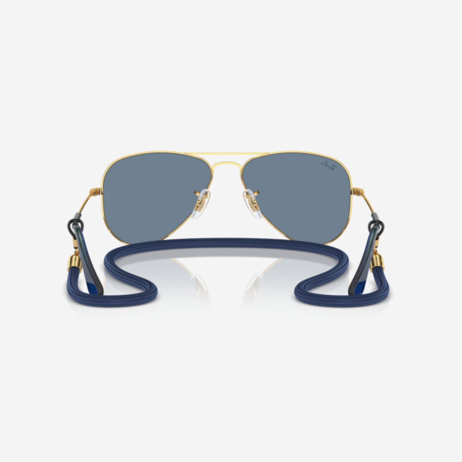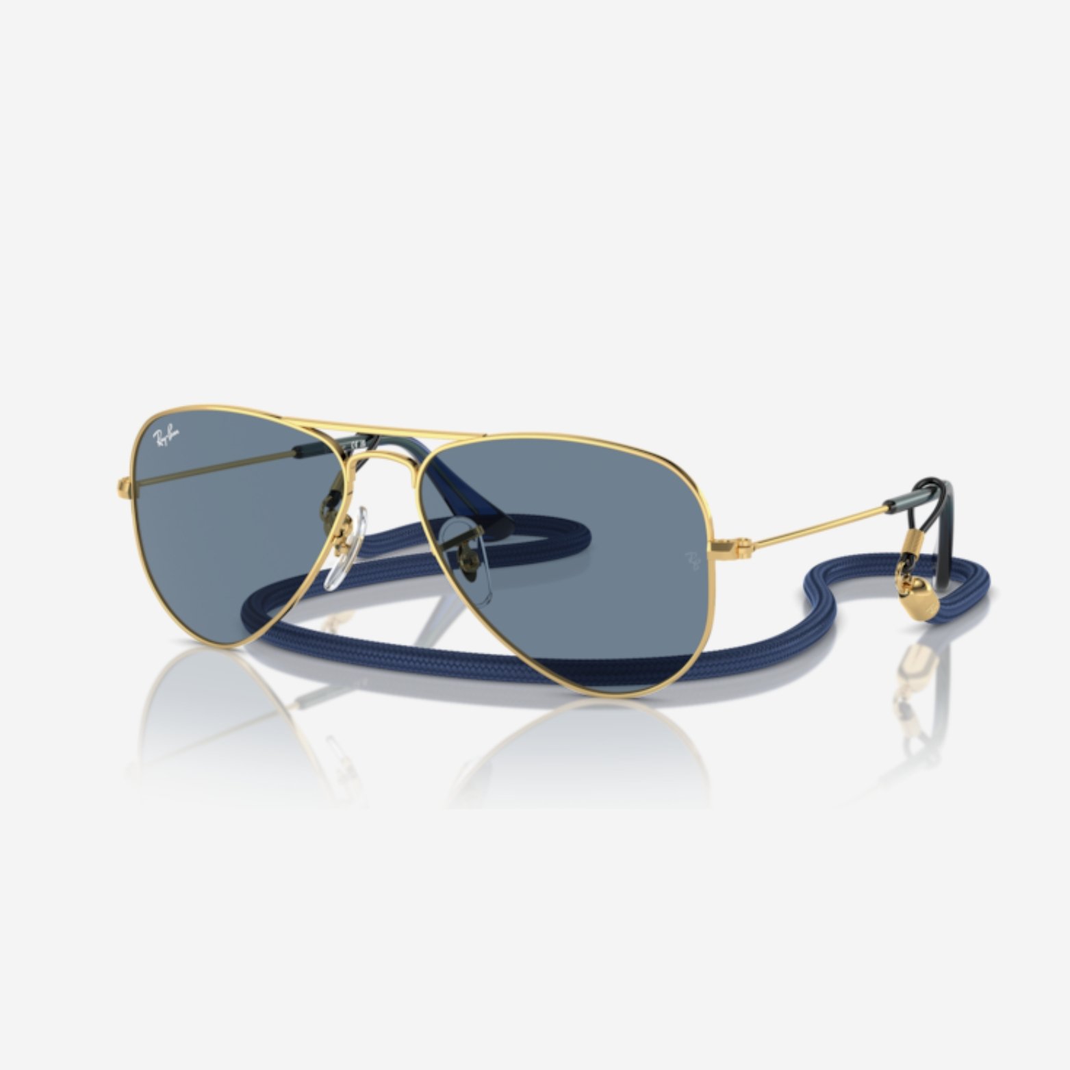 Occhiale da sole Ray-Ban Junior RJ9506S 223/1U: montatura metallo oro Arista (gold) in stile aviator, lenti policarbonato specchiate light blue mirror, protezione totale UV 400. Forma calibri 52 mm / ponte 14 mm / aste 125 mm — perfetto per bambini che cercano stile e comfort da veri adulti.