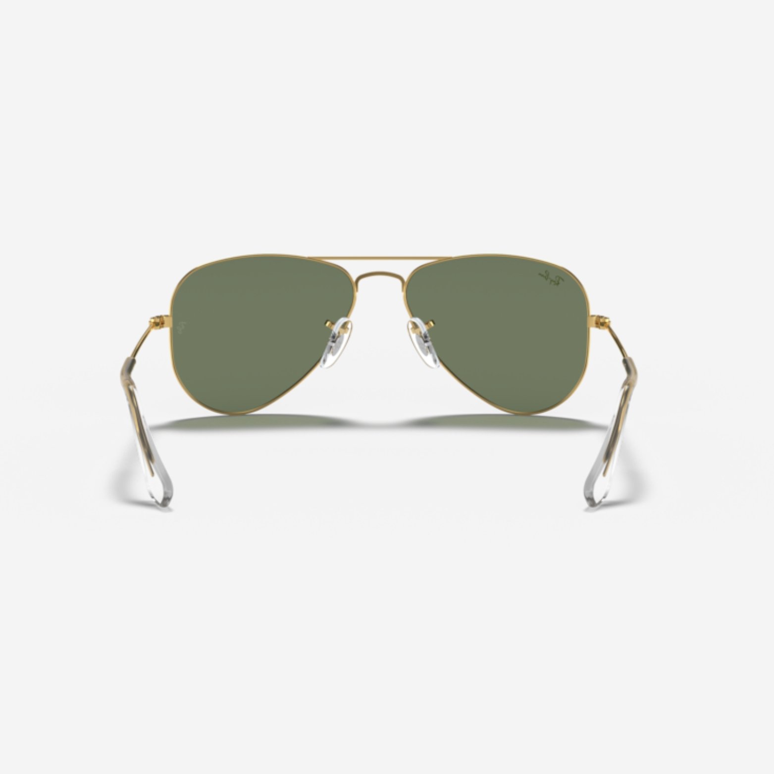 Occhiale da sole Ray-Ban Junior RJ9506S 223/71: montatura in metallo color oro (Arista gold) stile aviator per bambini, lenti policarbonato colore verde con protezione UV400 e filtro categoria 3. Calibro 50 mm o 52 mm, ponte 13 mm / 14 mm, aste 120 mm / 125 mm. Brand di riferimento per qualità, durata e look senza tempo.