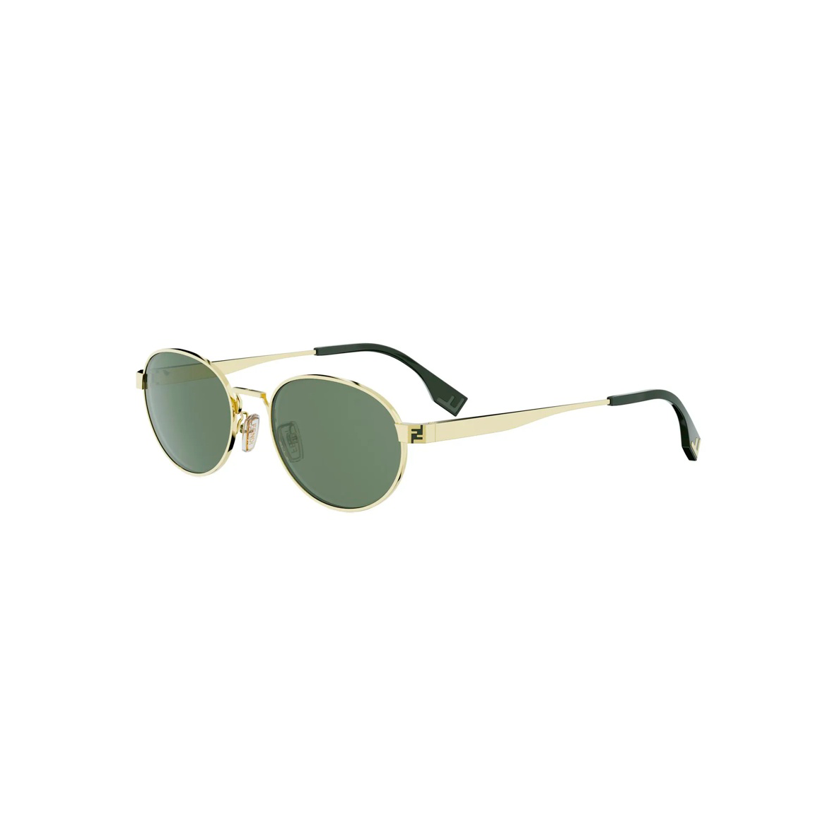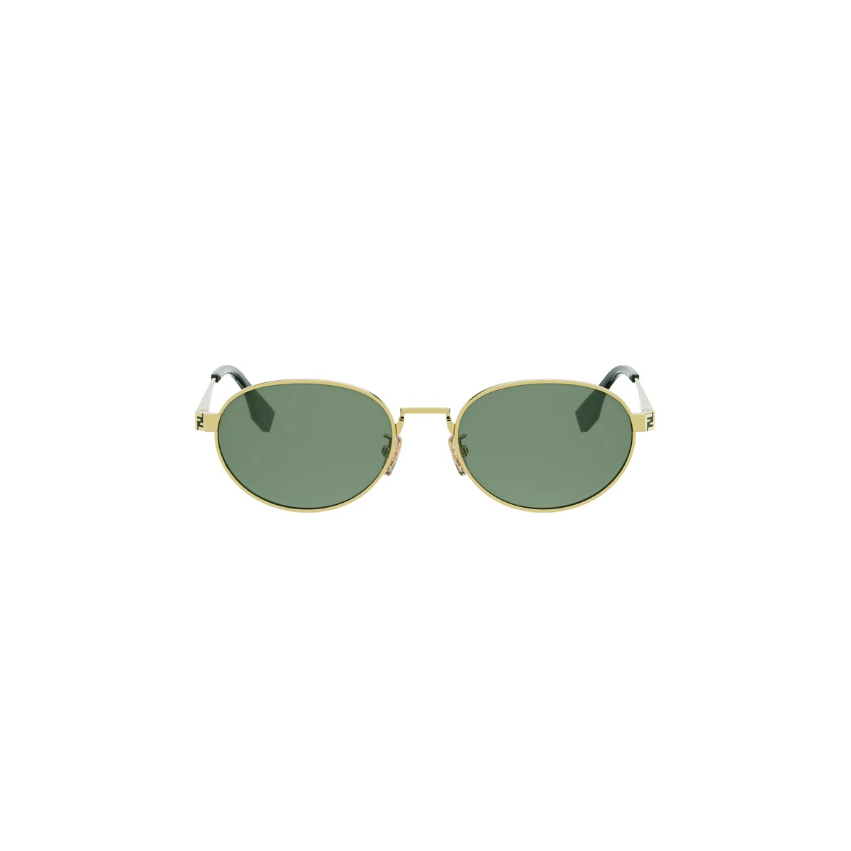 Montatura in metallo oro lucido, forma ovale “Sky” e lenti verdi, Un modello elegante della linea Fendi che unisce stile vintage e modernità.