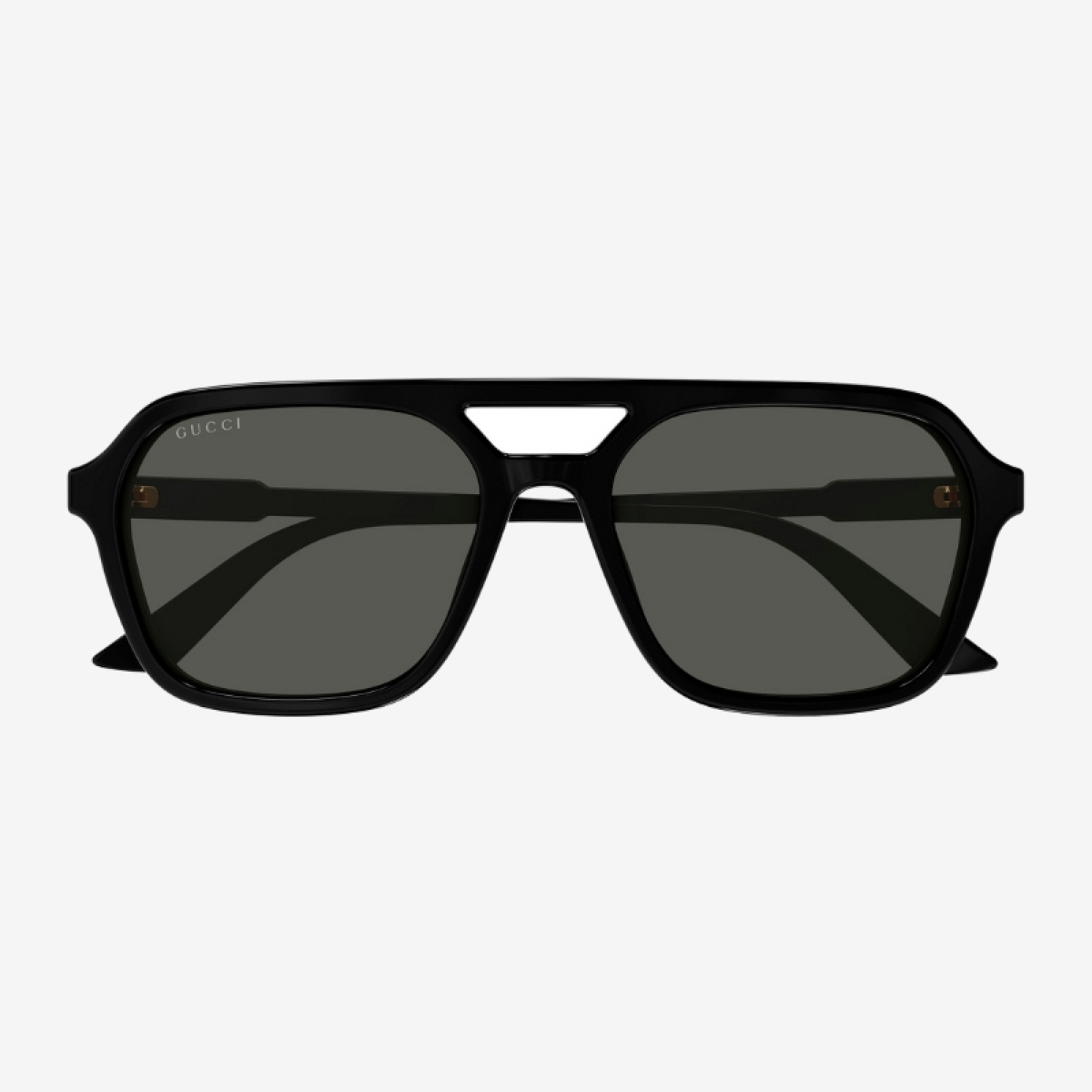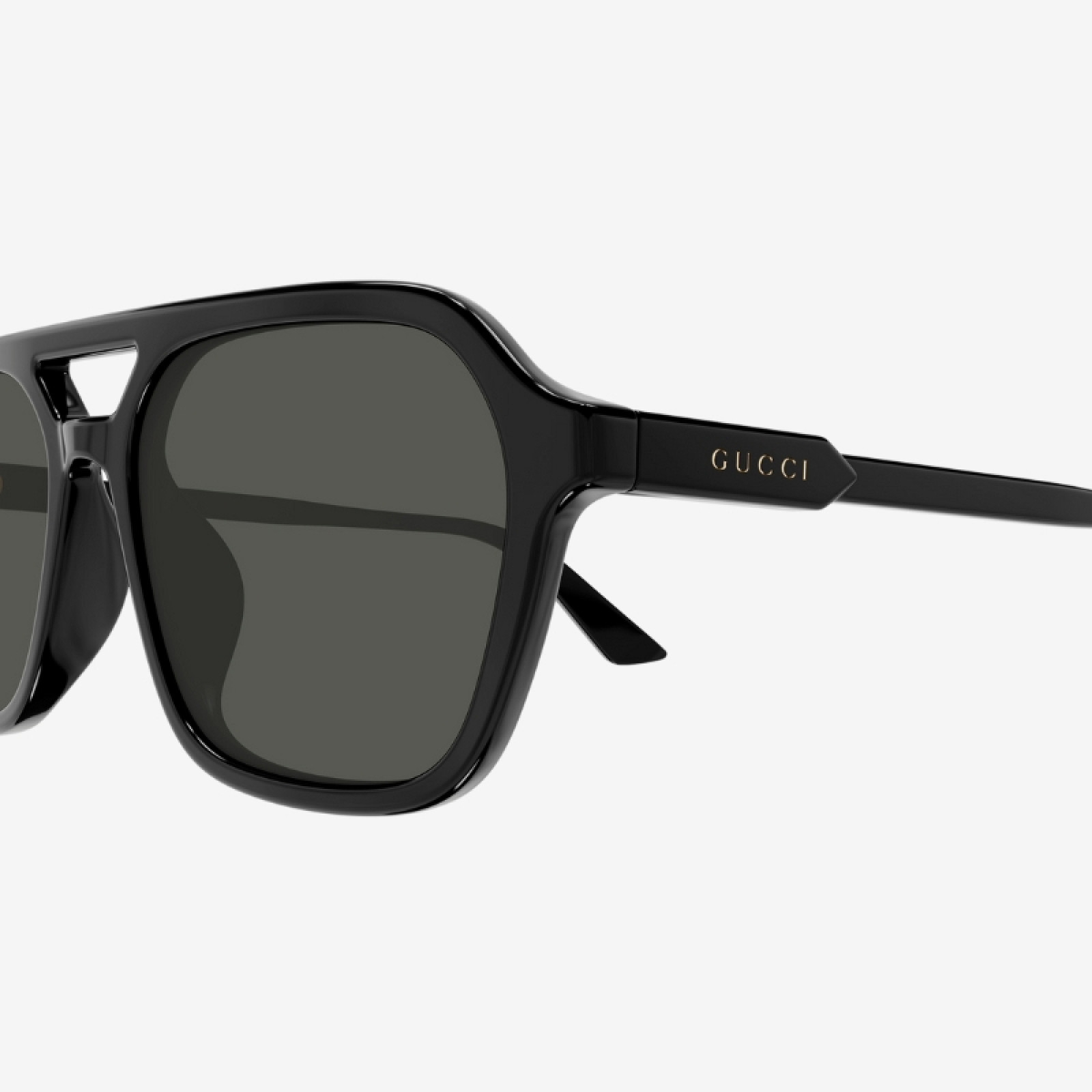 Gli occhiali da sole Gucci GG1823 offrono un mix di lusso e stile moderno. Forma caravan con doppio ponte, montatura in acetato di alta qualità e lenti grigie che proteggono dai raggi UV, si distinguono per il design sofisticato e il logo Gucci sulle astine. Perfetti per chi cerca eleganza e raffinatezza in ogni dettaglio.